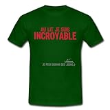 | ✚✚✚ Spreadshirt, au_lit_incroyable_dormir_jours1, Tee shirt classique Homme, vert bouteille, M au lit je suis incroyable ....je peux dormir des jours ;) Tee shirts. Le classique: ce tee shirt pour hommes à coupe droite est composé de coton filé pré-rétréci. La double couture en bas des manches, à la base et au col, garantit sa qualité et sa bonne finition. Confort garanti. Grammage: 190g/m². Composition 100% coton. Après confirmation de commande nous imprimons le produit individuellement pour toi. Ainsi, nous fabriquons des pièces uniques qui font vraiment plaisir à nos clients et soit dit en passant, nous préservons l''environnement.