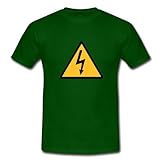 Spreadshirt, danger, Tee shirt classique Homme, vert bouteille, MAttention,Symbole,Foudre,Électicité. Le classique: ce tee shirt pour hommes à coupe droite est composé de coton filé pré-rétréci. La double couture en bas des manches, à la base et au col, garantit sa qualité et sa bonne finition. Confort garanti. Grammage: 190g/m². Composition 100% coton. Après confirmation de commande nous imprimons le produit individuellement pour toi. Ainsi, nous fabriquons des pièces uniques qui font vraiment plaisir à nos clients et soit dit en passant, nous préservons l''environnement.