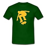 Spreadshirt, Tee shirt classique Homme, vert bouteille, M. Silhouette of a Skater doing a kickflip. Hommes, marron. Le classique: ce tee shirt pour hommes à coupe droite est composé de coton filé pré-rétréci. La double couture en bas des manches, à la base et au col, garantit sa qualité et sa bonne finition. Confort garanti. Grammage: 190g/m². Composition 100% coton. Après confirmation de commande nous imprimons le produit individuellement pour toi. Ainsi, nous fabriquons des pièces uniques qui font vraiment plaisir à nos clients et soit dit en passant, nous préservons l''environnement.